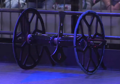 Straddle 2 is a large, two-wheeled axlebot with a full brushless drive system[1] and a set of interchangeable asymmetrical vertical bar spinners of differing lengths.[2] The spinners, mounted in the center of the robot’s chassis, are modelled on the weapon used by the team’s BattleBots competitor Monsoon, and enabled Straddle 2 to cause severe damage to opponents whenever it drove directly over them. Straddle 2’s wheels and rear stabilisers were designed to flex whenever the robot was knocked onto its sides, although the spoked design of the wheels themselves often lead to them getting damaged easily by other high-powered spinners.